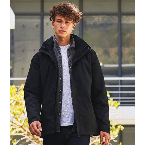 Mesh lined body and polyester lined sleeves. Waterproof with taped seams. Windproof. Concealed adjustable hood. Full length zip with tear release storm flap, chin guard and inner zip guard. Inner left chest tear release patch pocket. Two front zip pockets. Tear release adjustable cuffs. Drawcord hem. Cut out label. Concealed zip access for decoration. Interactive style.