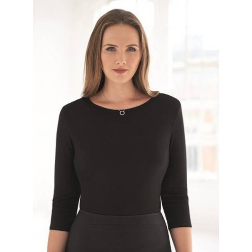 3/4 Sleeve women's stretch top, rounded neckline
