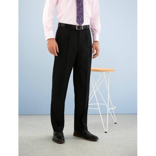 Single pleat classic fit trouser, 2 side pockets, 1 rear pocket.