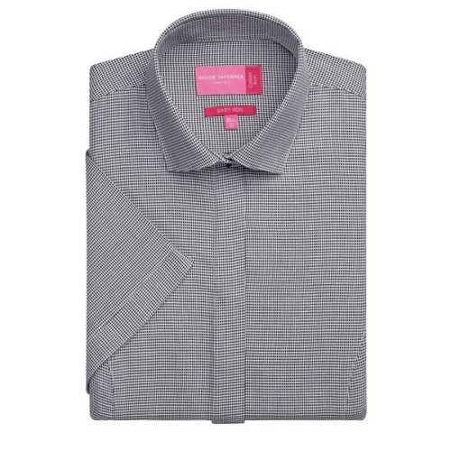 Cotton rich, semi-fitted, short sleeve ladies blouse, Fly front, Button up collar, cutaway collarMatches Lugano blouse & Monza shirt.