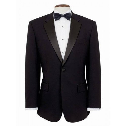1 Button fastening with satin faced lapels and pocket flaps, side ventsSingle breasted, 1 button, side vents, fully lined, 2 button cuff, 3 interior pockets, satin lapels and buttons