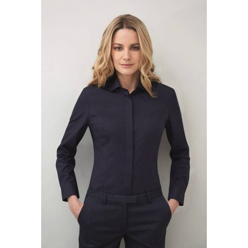 Cotton rich, long sleeve ladies blouse, easy care and easy iron practicality.Fabric Information