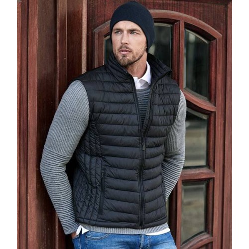 Polyester padding and lining. Showerproof. Fitted style. Full length low profile zip with chin guard and inner zip guard. Inner zip media pocket. Two front zip pockets. Drawcord hem. Branded zip pulls and hanging loop. Zip access for decoration.
