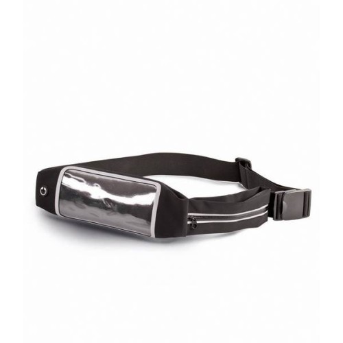 Water repellent fabric. Elasticated strap with two zip pockets. Main pocket has a transparent PVC window and is suitable for media devices. Coin/key pocket. Ear phone access.