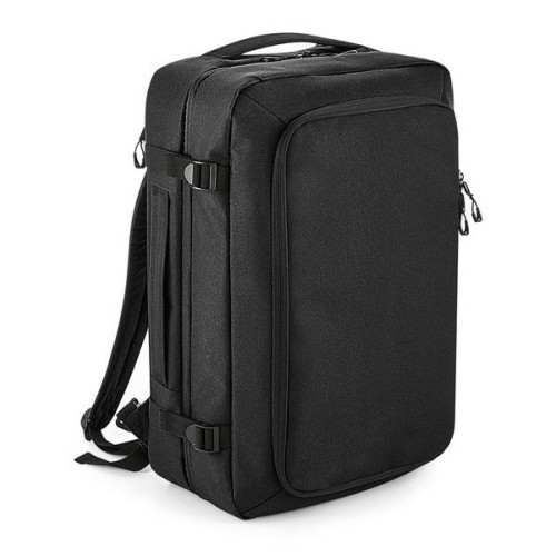 Aircraft cabin compatible. Padded grab handles. Foldaway backpack shoulder straps. Dual compartment design. Duel compression straps. Lockable main zip compartment. Quick access top zip pocket. Large front zip compartment with internal mesh divider. Internal zip pocket. Organiser section. Padded laptop sleeve compatible up to 15.6'". Tear out label. Capacity 40 litres.