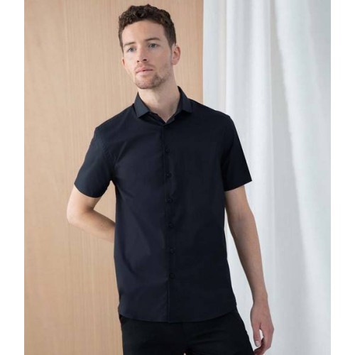 Easy care fabric. Modern tailored fit. Cut away collar. Self colour pearlised buttons. Back darts. Curved hem. Cut out label.