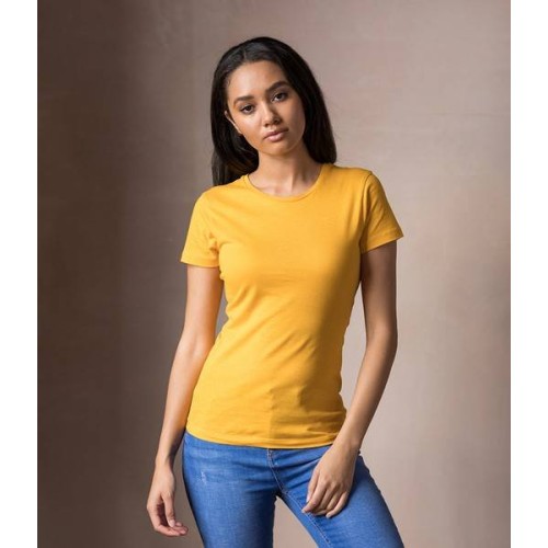 Girlie fit. Ribbed collar. Taped neck. Side seams. Twin needle sleeves and hem. Unbranded size label at neckline.
