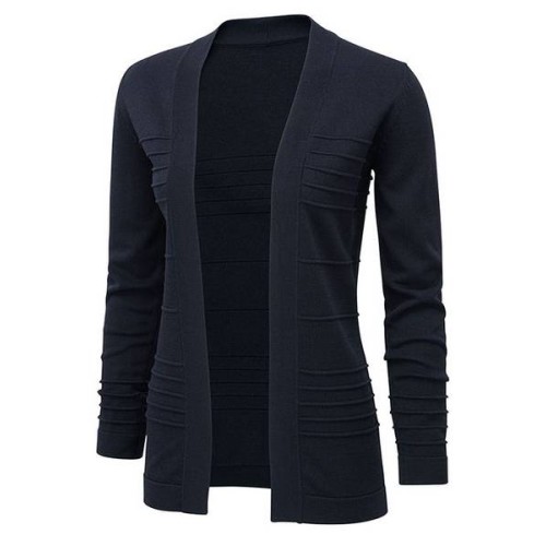 Rachel jacket style cardigan with horizontal rib detail is the perfect alternative to a jacket. It looks great over our blouse and our jersey under suit tops.